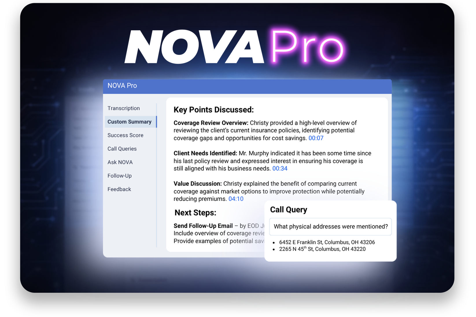 - Ask NOVA - Looking for more? Dig deeper into any call with just a simple ask.
