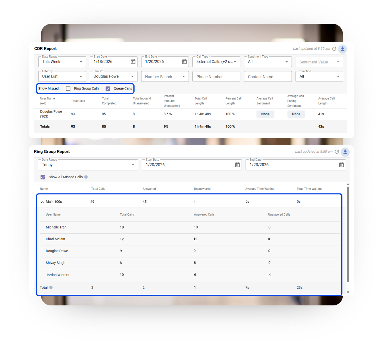 You can now view missed calls for both Ring Groups and Queues directly in your CDR Reports, eliminating the need for extra reports or manual guesswork.